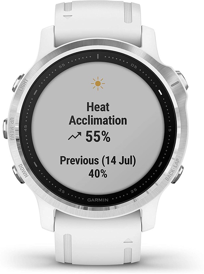 GARMIN Fenix 6S Multisport GPS Smartwatch, White with White Band, Standard.