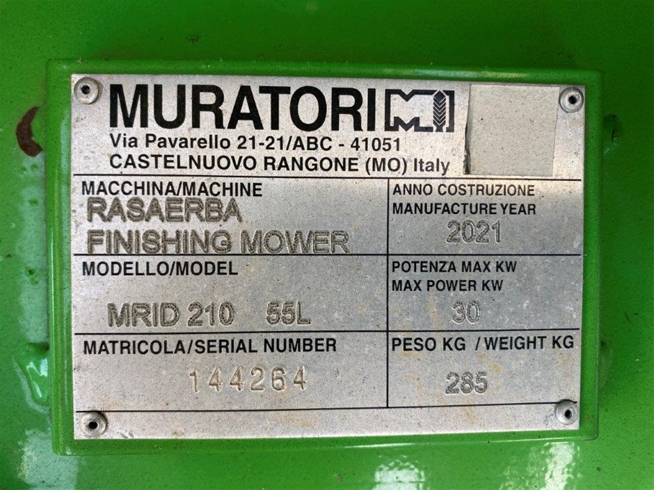 Unused 2021 Muratori Mini Loader Hydraulic Finishing Mower Deck Attachment