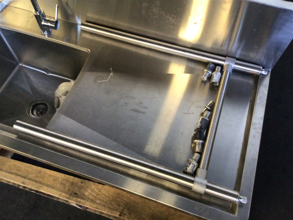 • Bench 1350 x 700mm, Sink 500 x 450 x 300mm, Splash back 300mm (H), Tap mixer, PVC S-Bend, 1 set of legs only 840mm (H).