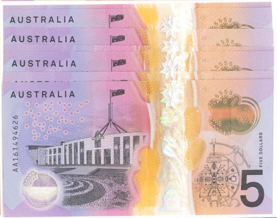7 First Prefix 'AA16' & Last Prefix 'EJ16' 2016 Australian $5 Banknotes