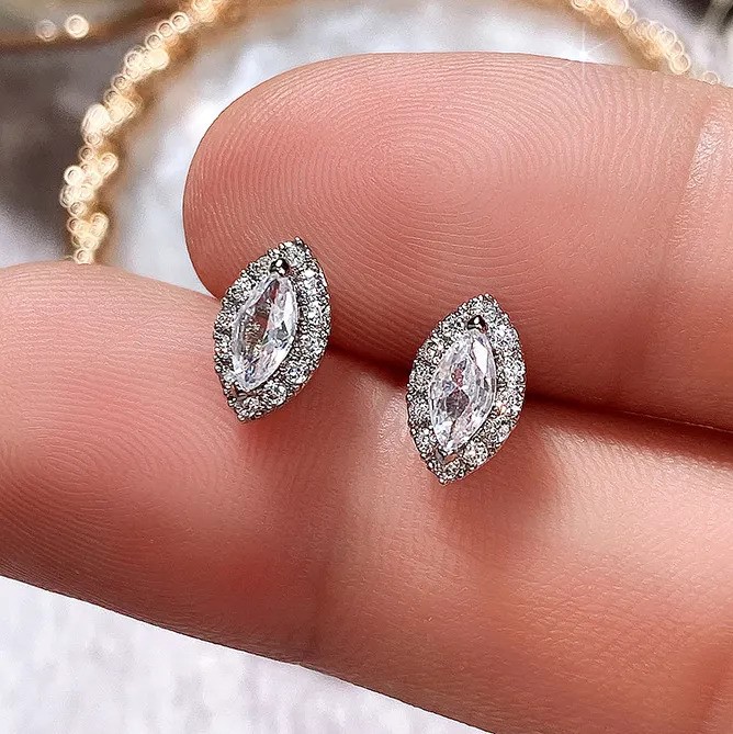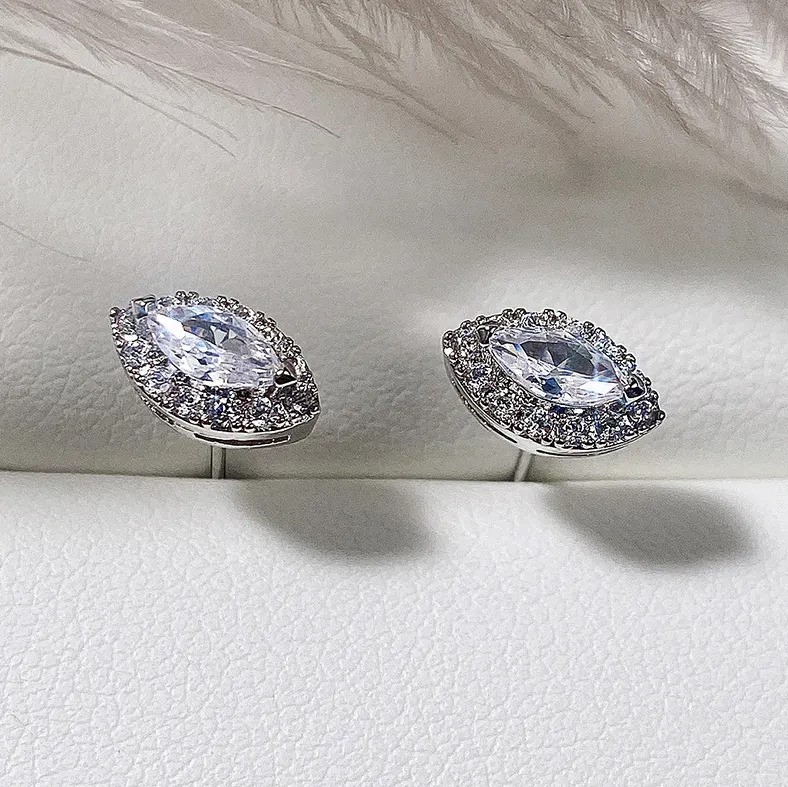 This Earrings is made from an Elegant 18K White Gold plated CZ Stud Earring.