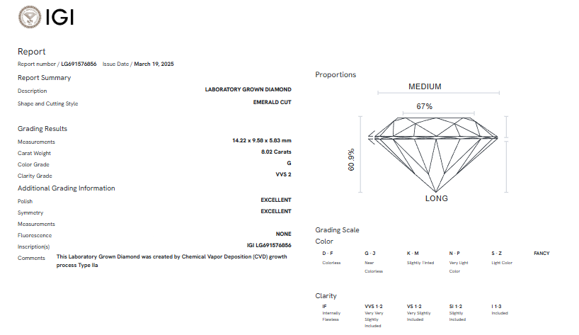 8.02 Carats G/VVS2 Lab Grown Diamond - IGI Certified