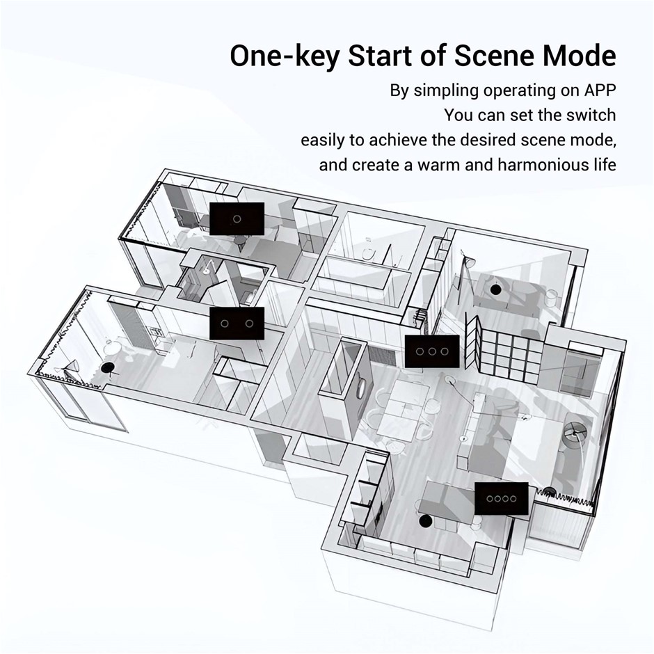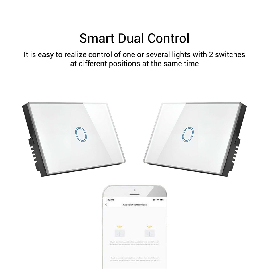 Introducing our Smart WiFi Light Switch, a cutting-edge solution for modern home automation. With the Smart Life Tuya app control, you can conveniently control your switches from anywhere using your smartphone. This SAA approved switch is compatible with Alexa and Google Home, allowing voice control for a hands-free experience. Set scheduled/countdown timers to automate your lighting and create a personalized ambiance. Share control with your family members for seamless smart home integration. The high-quality crystal tempered glass panel design is durable and fade-resistant, while the blue LED indicator adds a touch of distinction. No gateway is required as you can control the switch directly. Installation is easy, with neutral wire required. Enjoy status indication and power statistics functions for added convenience. This versatile switch supports 2-way and 3-way configurations, making it suitable for various applications, including lamps, water heaters, ventilators, and motors. With overload and overheating protections, your home is safer than ever. Embrace the future of home automation with our Smart WiFi Light Switch, perfect for homes, offices, hotels, hospitals, and more.