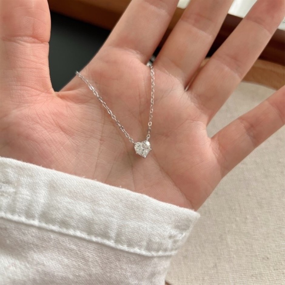 1.00ct Heart Cut GRA Certified Moissanite 925 Silver Pendant Necklace