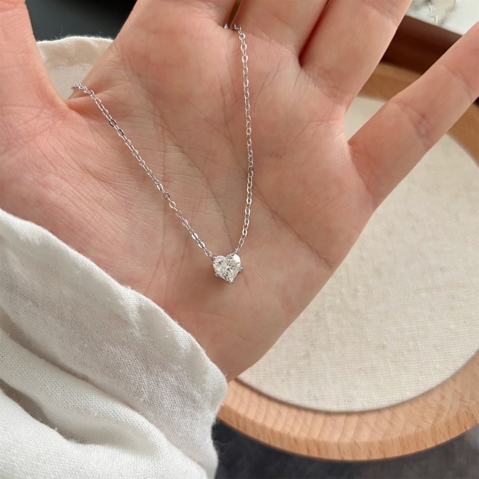 1.00ct Heart Cut GRA Certified Moissanite 925 Silver Pendant Necklace