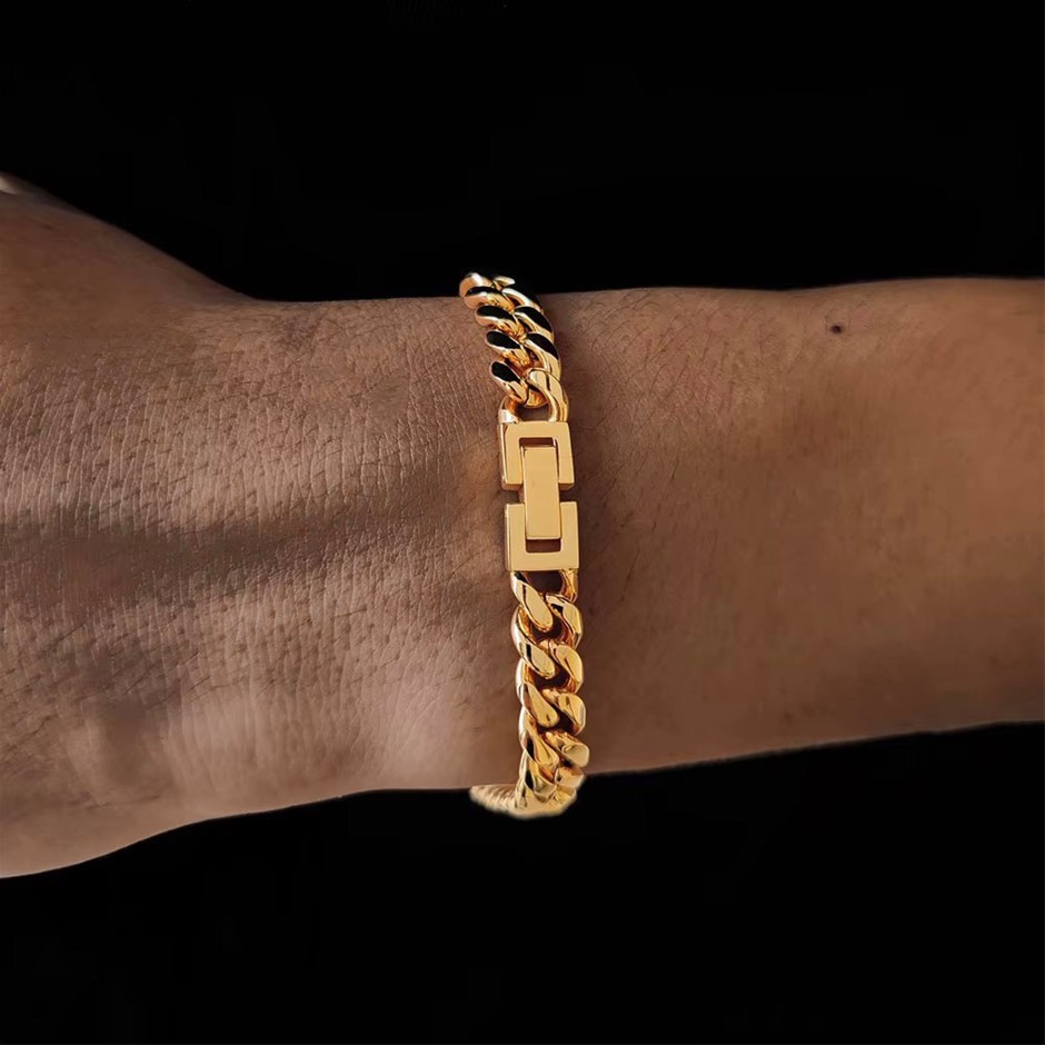 Opulent Galleria - 18K Gold-Filled Cuban Chain Bracelet, 8MM Wide - 17.8cm