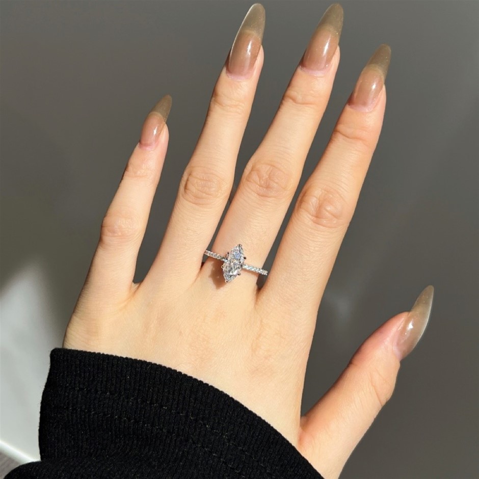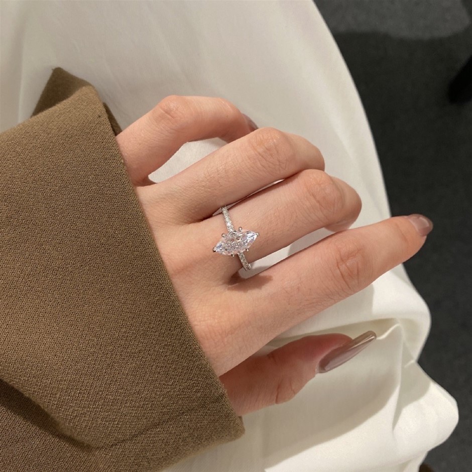 1.5ct Marquise Cut Simulated Diamond 925 Sterling Silver Ring - Size 7