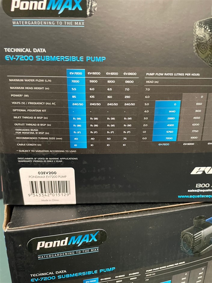 2 x PondMAX EV7200 Submersible Pumps