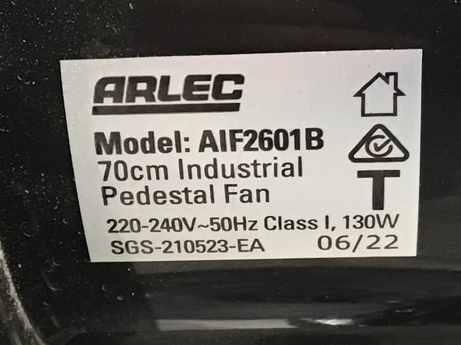 • 2 x Arlec AIF2601B 70cm Pedestal Fans. 240 volt. Adjustable height.