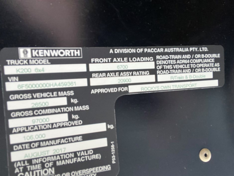 2017 Kenworth K200 6 x 4 Prime Mover Truck