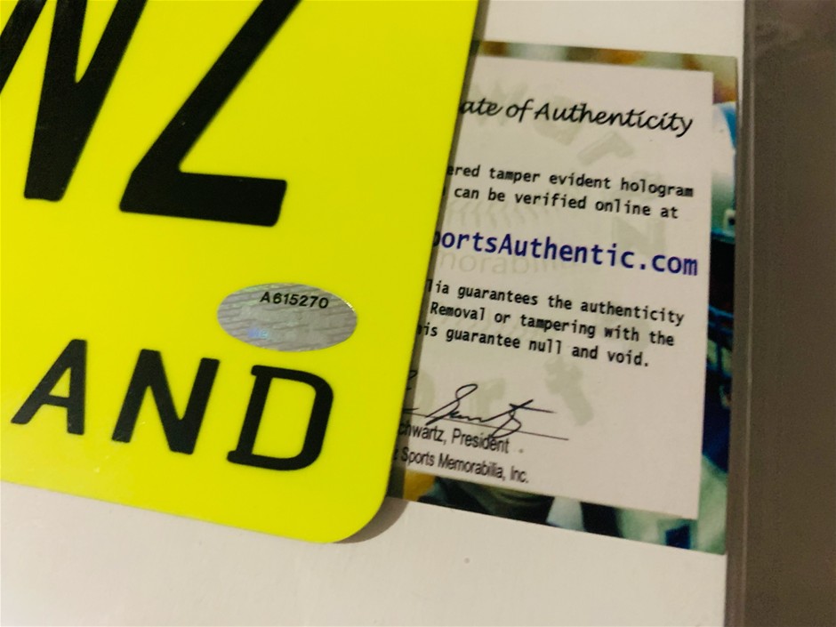 full size metal license plate has been hand-signed by Hencry Winkler.- The Fonz - Happy DaysThe item comes with a serial numbered hologram - A615270 from Schwartz authentication with a certificate of authenticity