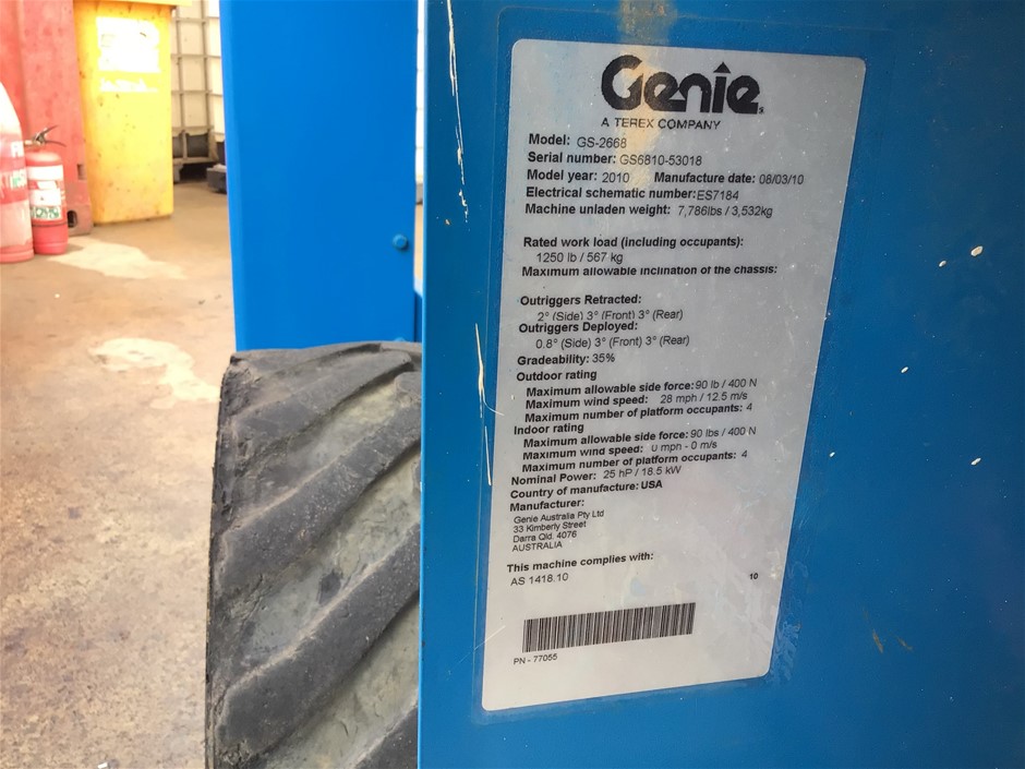 2011 Genie GS2668RT Scissor Lift - 26ft (7.9m) - Diesel - Bunbury