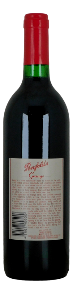 "Medium to full red, with just a touch of purple remaining; powerful, complex dark fruits, chocolate and savoury lemon/vanilla oak on the bouquet, then a similarly powerful palate where earth and chocolate join the chorus of flavours promised by the bouquet; persistent tannins, of course. It's hard to suggest this will be regarded as a great Grange in 20 years or so, but it is nonetheless in the mainstream of Grange style."
