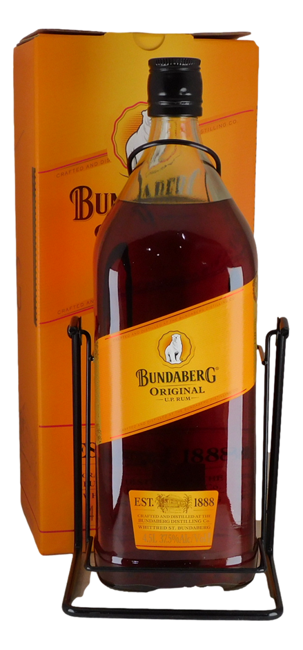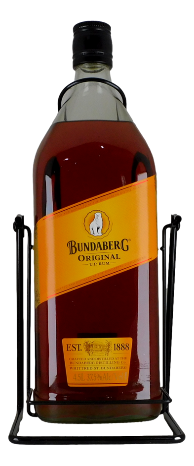 A special edition Bundy in a distinctive 4.5L swing cradle. BDC utilised the same bottles and cradles Johnnie Walker (also owned by Diageo) produced their swing cradles in. These were actually bottled at the Johnnie Walker plant in Scotland with rum distilled in Bundaberg.