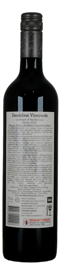 Dandelion Vineyards Lionheart of the Barossa Shiraz 2021 (6x 750mL)