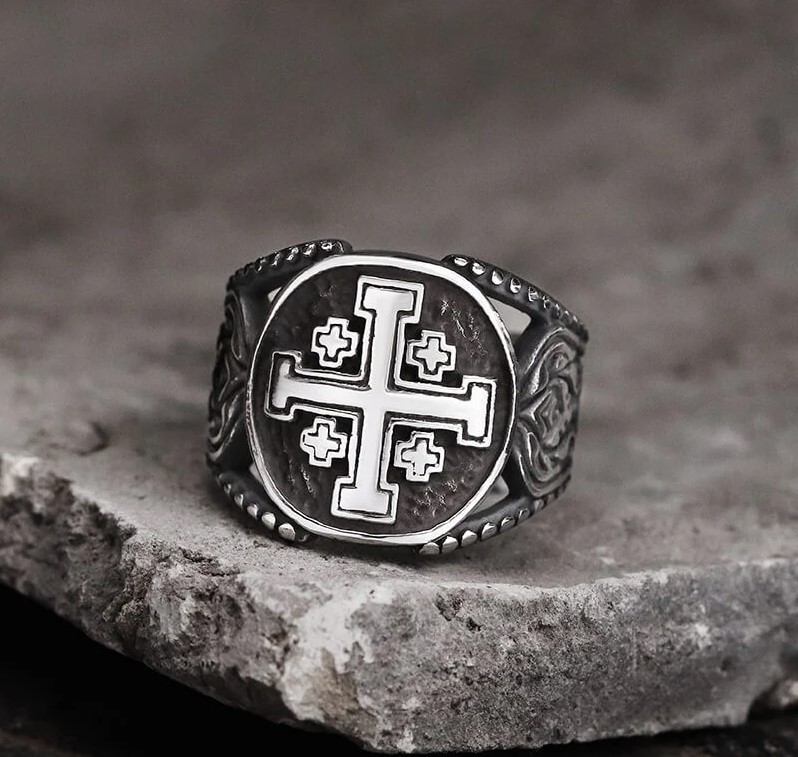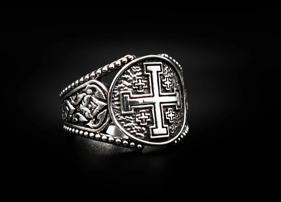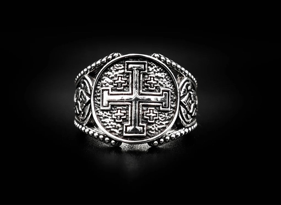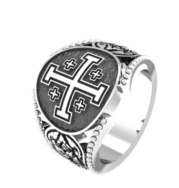• Honor your faith and heritage with this stunning Jerusalem Cross Ring, a beautifully crafted Knight Templar Crusader Cross Ring made from high-quality silver. This piece is designed for those who appreciate rich historical symbolism and elegant craftsmanship.