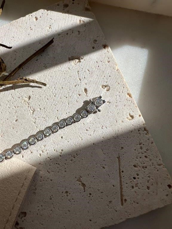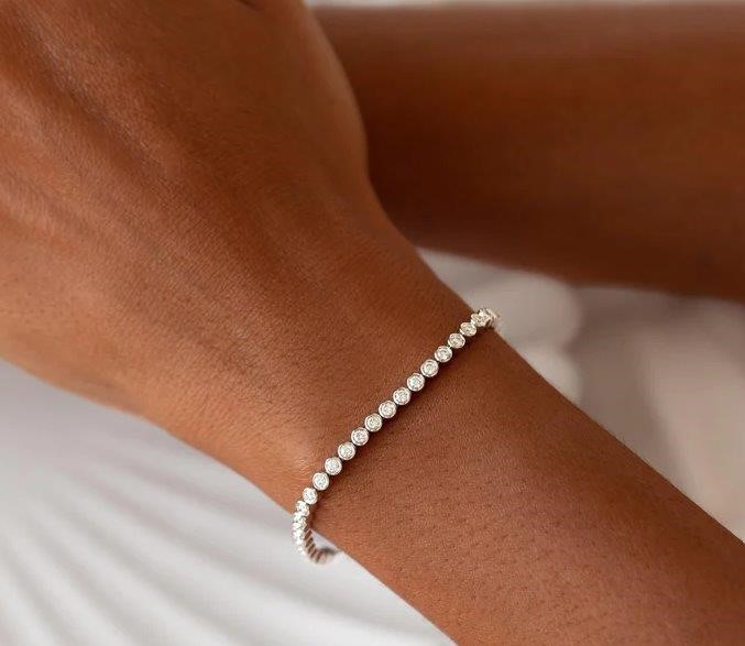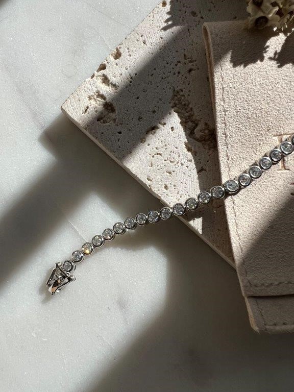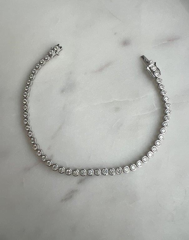 Moissanite 2.5mm Bezel Tennis Bracelet 14k White Gold on Sterling Silver