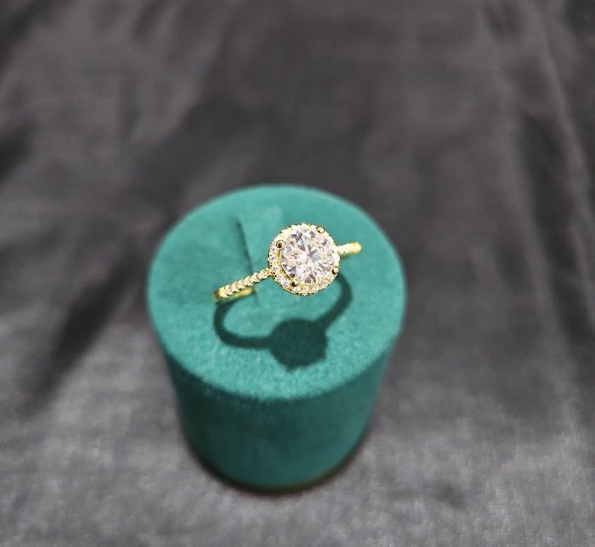 • Discover our Moissanite Diamond 1.0ct White Brilliant Cut Ring , crafted with high-quality solid 925 sterling silver and plated in 18K real solid Yellow gold. This luxurious piece, stamped S925, comes with a GRA Certificate and is 100% guaranteed to pass the diamond tester.