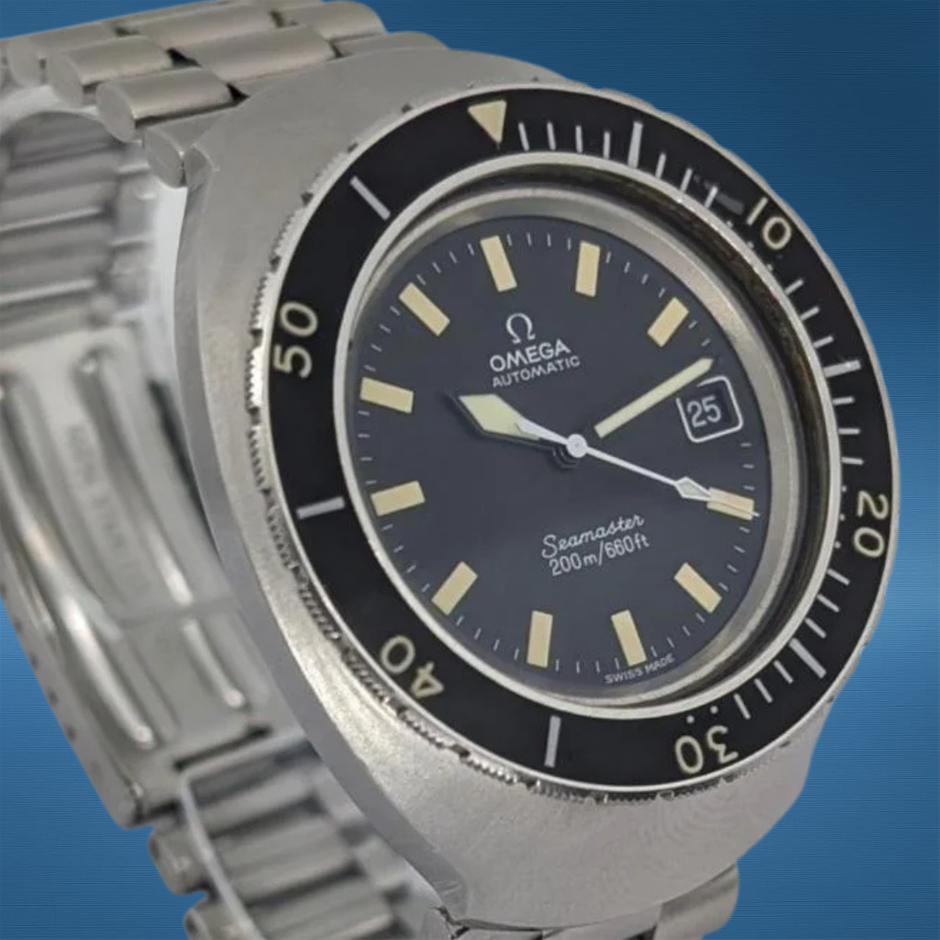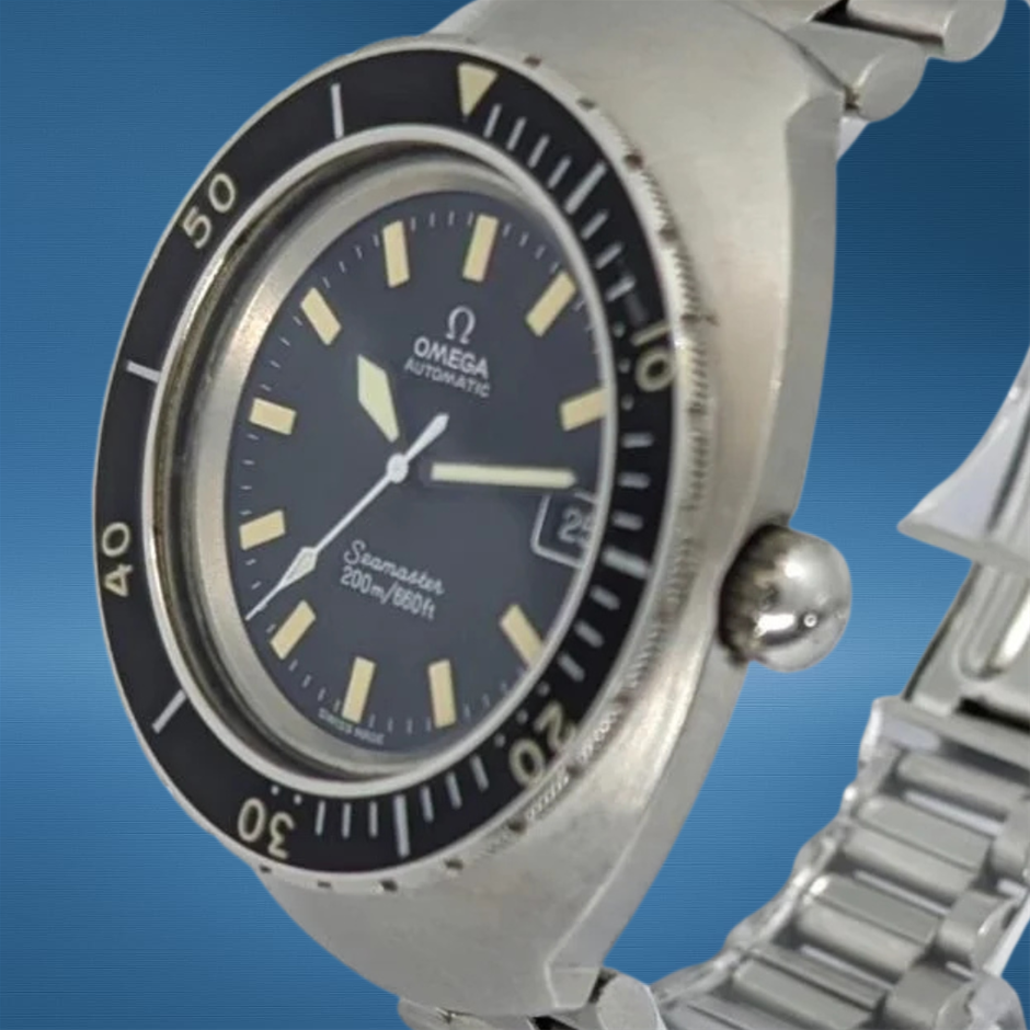 The Omega Seamaster Cosmic 200 166.091 captures the adventurous spirit of the 1970s with its large 41 mm monoblock case and classic Seamaster styling. Its robust construction and straightforward, legible dial make it an appealing vintage everyday watch with timeless appeal.