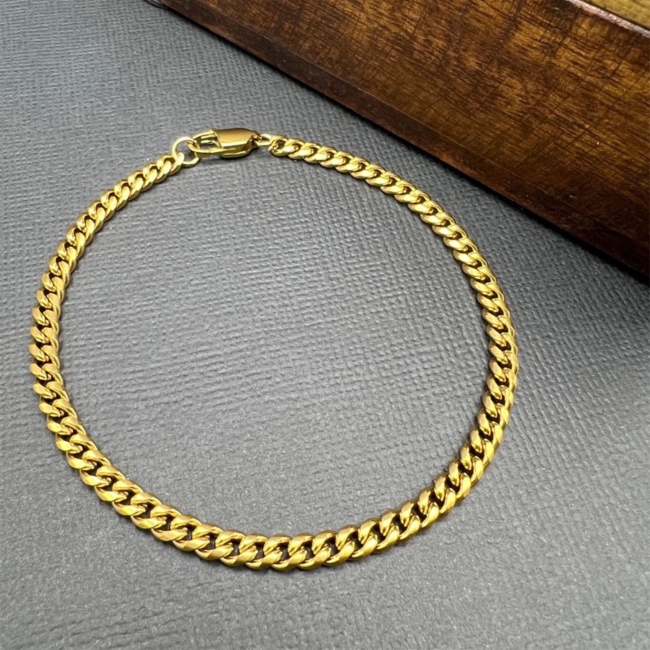 Opulent Galleria - 18K Gold-Filled Cuban Link Chain Bracelet, 4MM Wide - 20.3cm