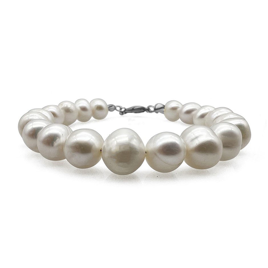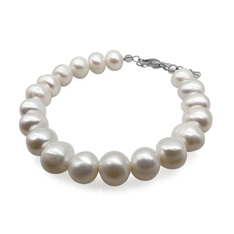 Natural 9-10mm Potato Shape Freshwater Pearl with Real Platinum Plated Bracelet.