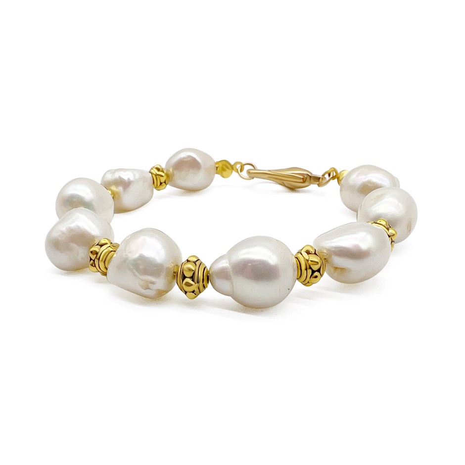 Baroque Pearls & Large Lobster Clasp Gold Plated Bracelet