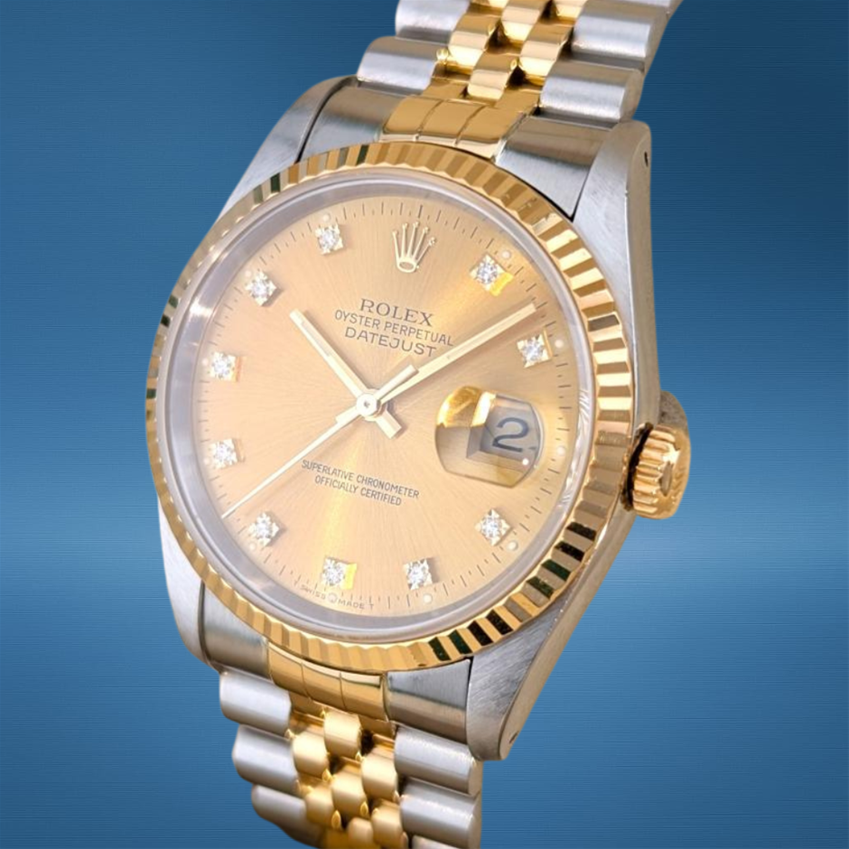 Rolex 16233G Datejust 36 Champagne Diamond Dial 36mm 1991 X-Serial