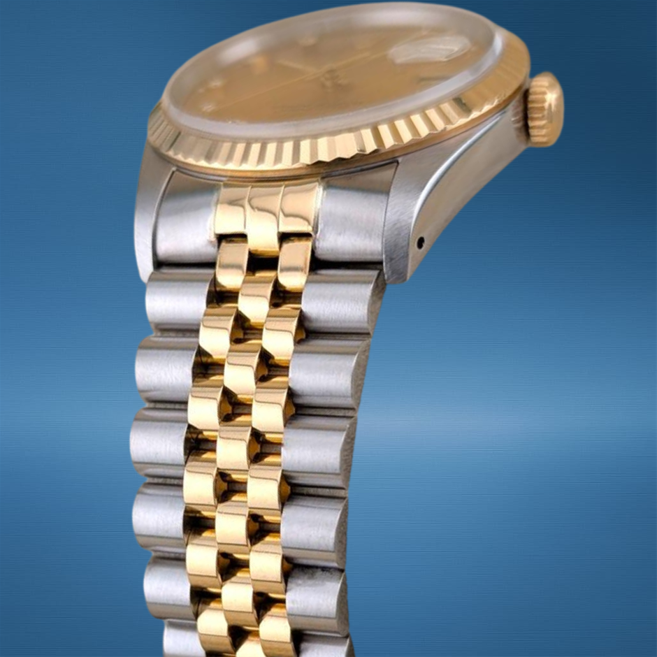The Rolex 16233G Datejust from the early ’90s pairs classic two-tone steel and yellow gold styling with a refined champagne diamond dial, giving it enduring elegance and presence on the wrist. Its robust Calibre 3135 movement and timeless 36 mm proportions make this vintage Datejust a versatile choice for both daily wear and special occasions.