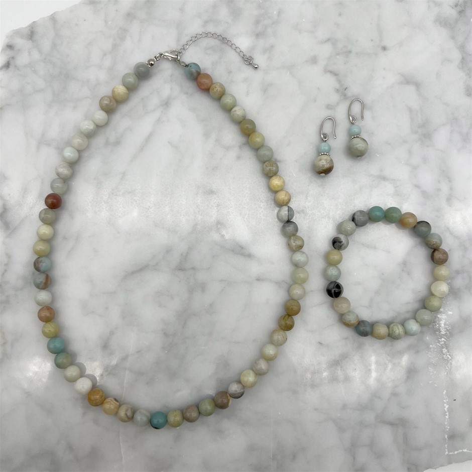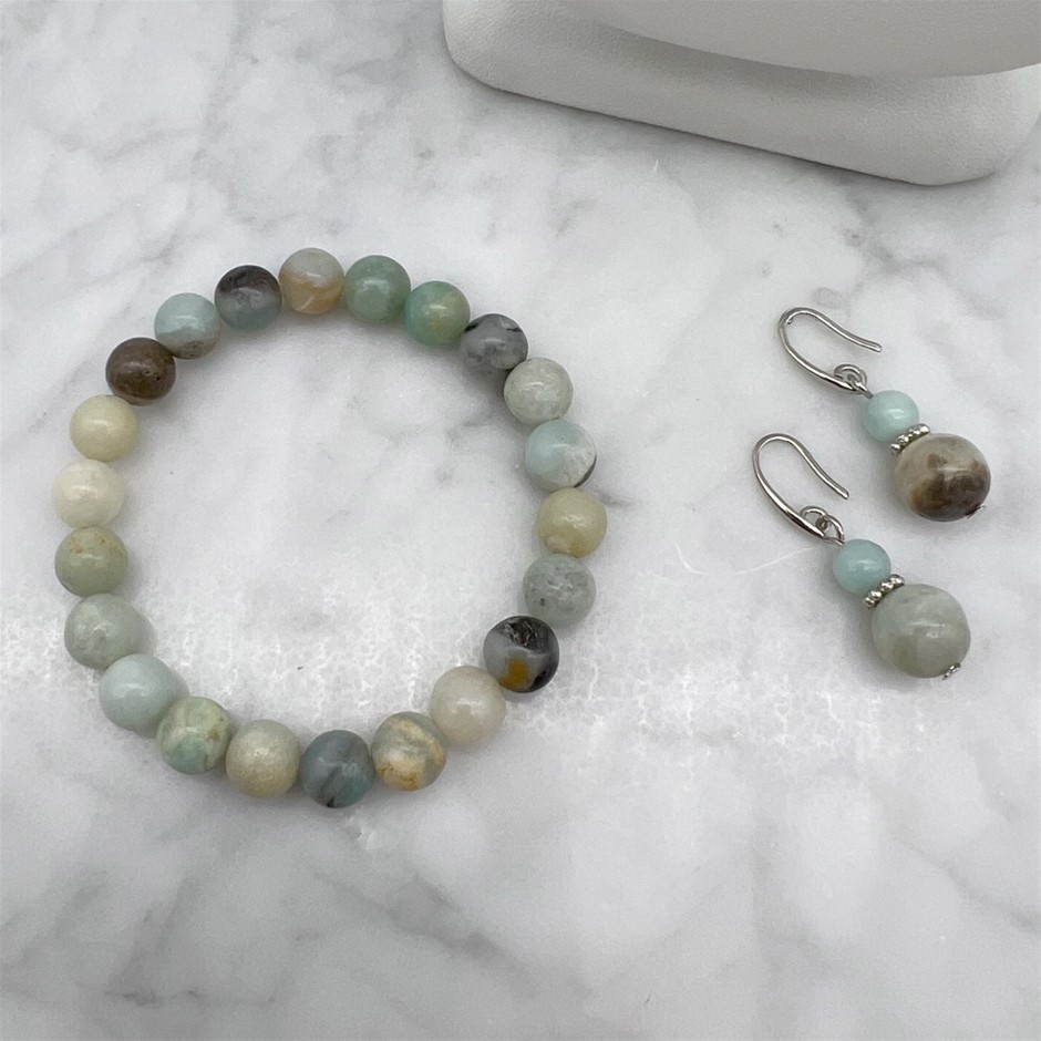 8mm Natural Round Amazonite Beaded Gemstone Jewellery Set.