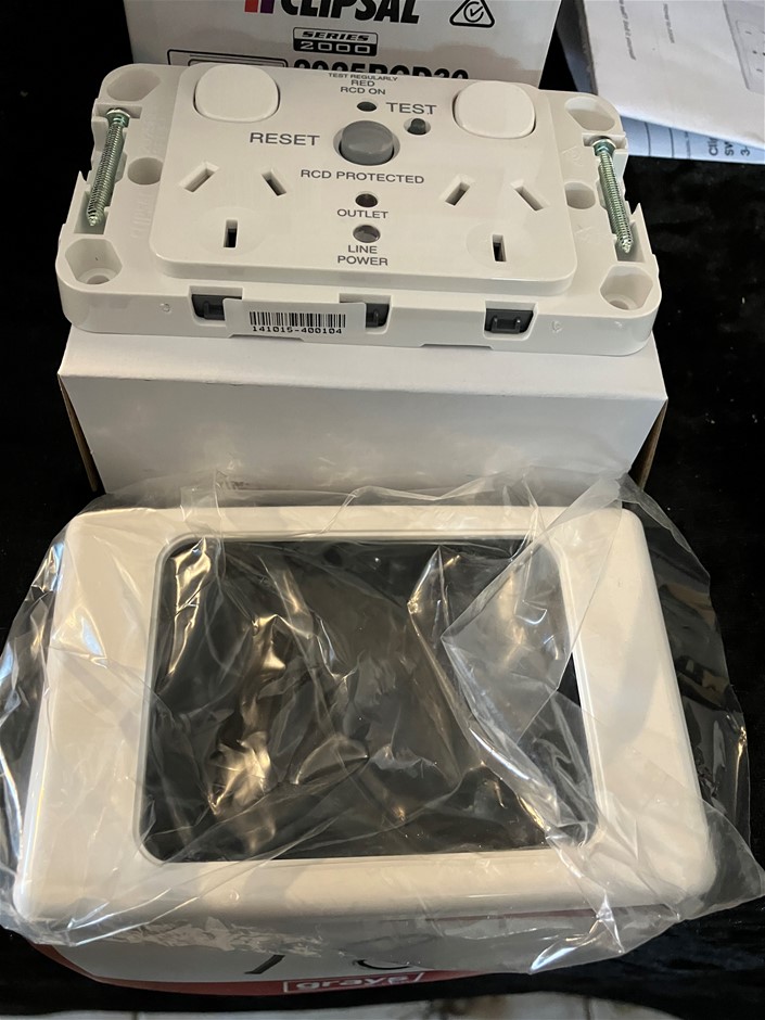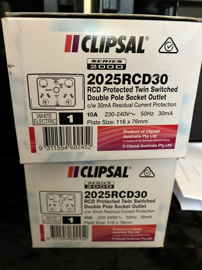 2 x Clipsal RCD Protected Twin Switched Double Pole Socket Outlets RCD Protected Twin Switched Double Pole Socket Outlet