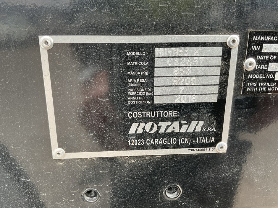 2018 Rotair MDVN53K Trailer Mounted Compressor