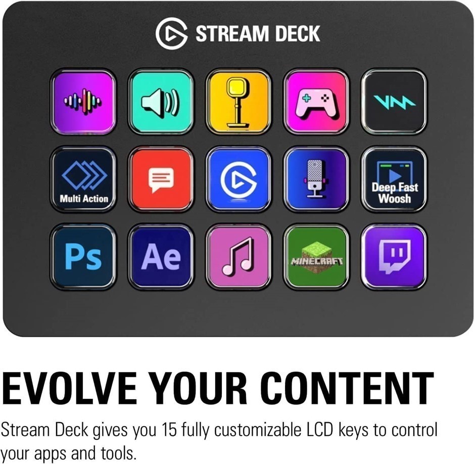 ELGATO Stream Deck MK.2 – Studio Controller, 15 Macro Keys, Trigger Actions in apps and Software Like OBS, Twitch, YouTube and More, Works with Mac and PC. Buyers Note - Discount Freight Rates Apply to All Regional Areas(Code: B09738CV2G) (334162-18)