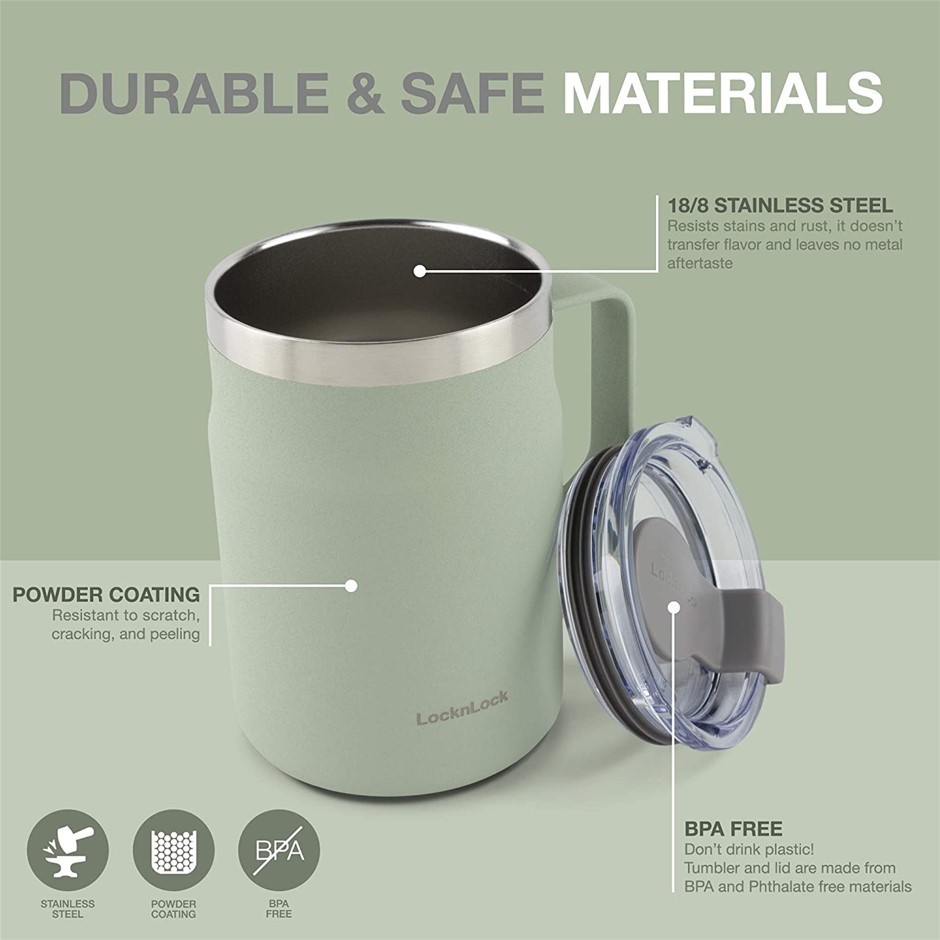 LOCK & LOCK Metro Mug with Handle & Lid Double Walled Stainless Steel Thermal Insulated, Mint, 475 mL. (Code: B08MVM2ZFJ) (332115-18)