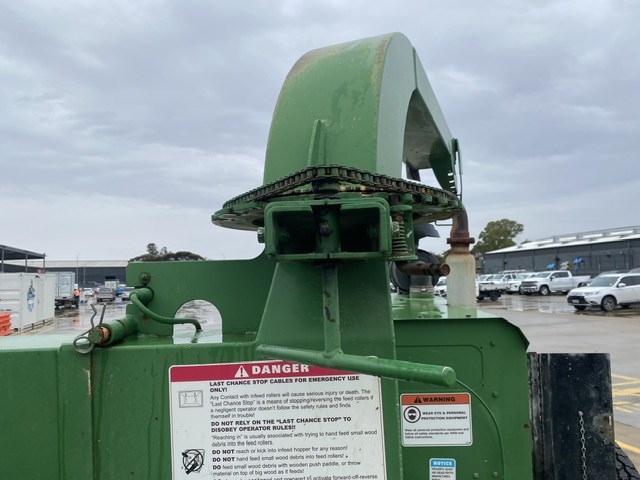 • Comments: Fold down rear shute feeder 1200mm(W), E-stops, 360c swivel discharge, infeed opening 35 x 43cm, disc 40”, Perkins 4 cylinder diesel, showing 2182hrs, Dead battery, non starter