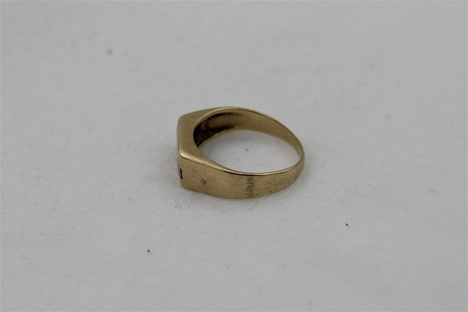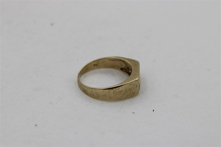 A Stamped 9ct Yellow and White Gold Flat Top Signet Ring Set