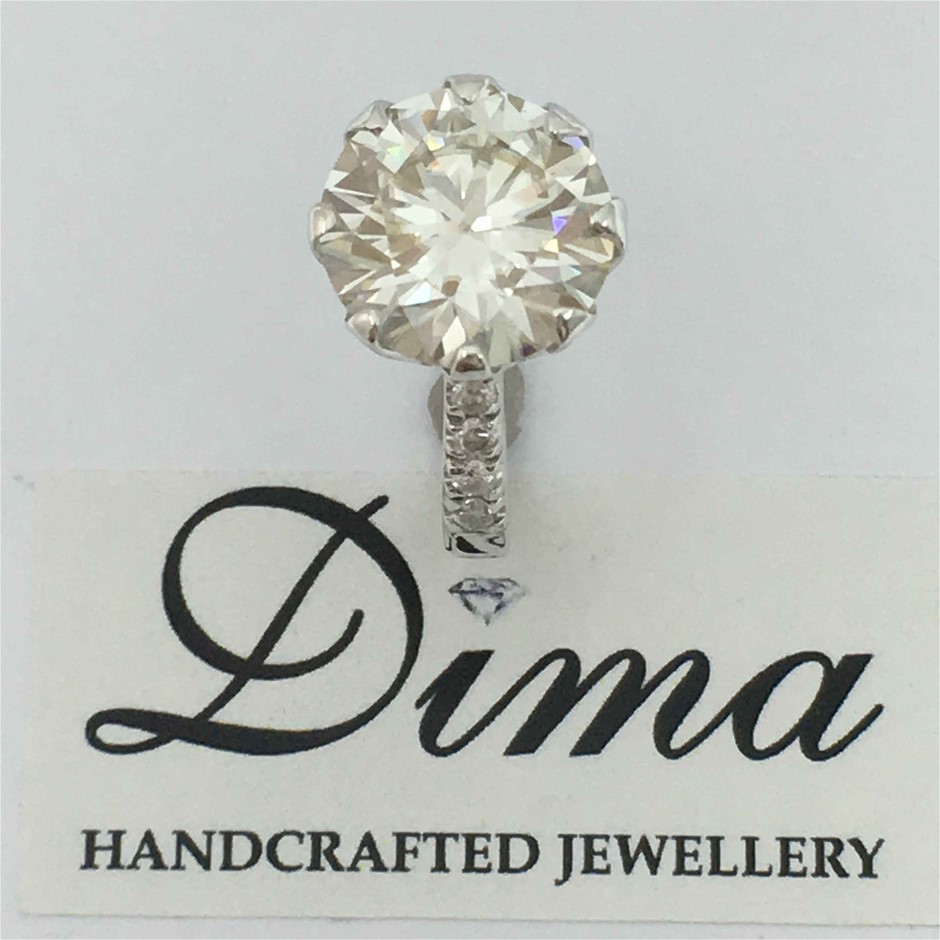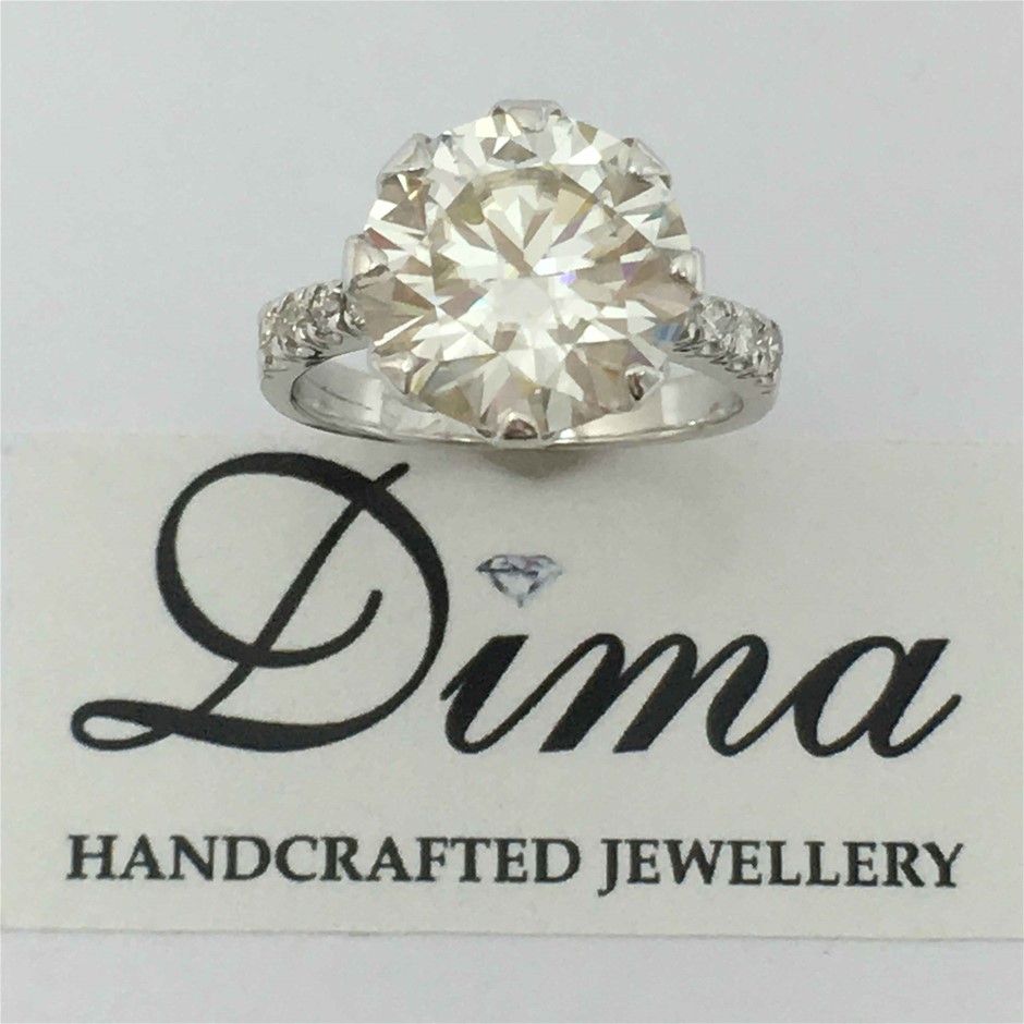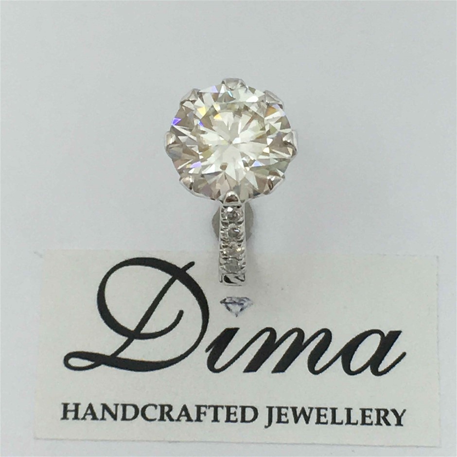 9ct White Gold, 4.73ct Moissanite and Diamond Ring