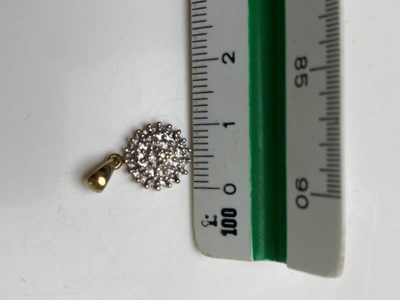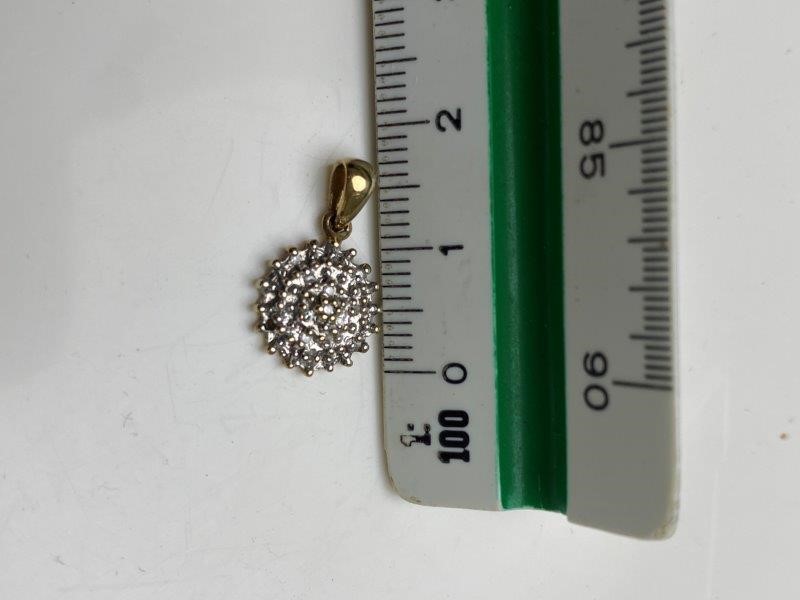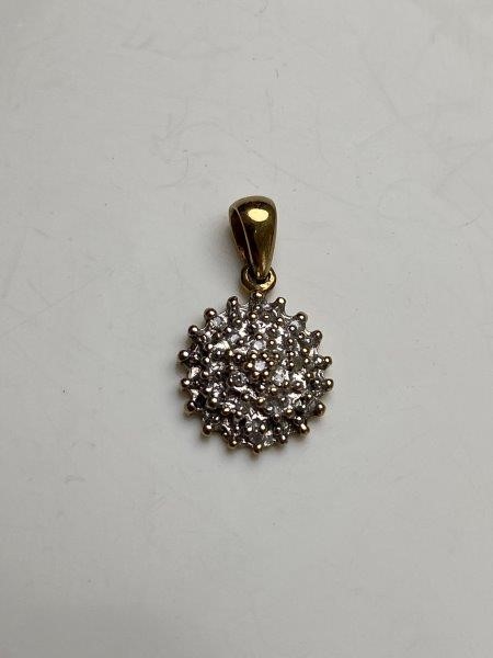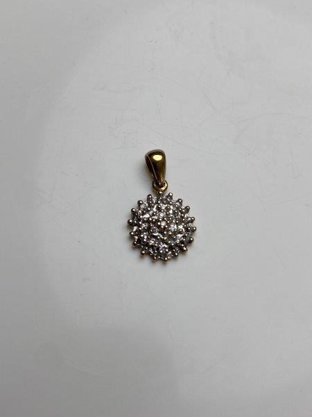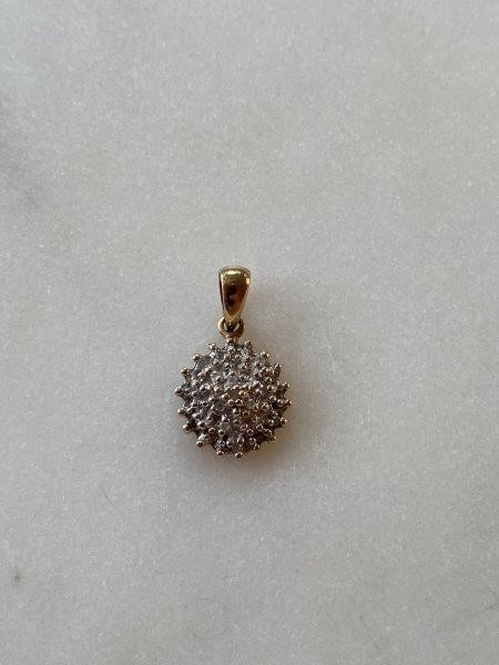 Solid 9ct Gold Cluster Diamond Two Tone Round Pendant