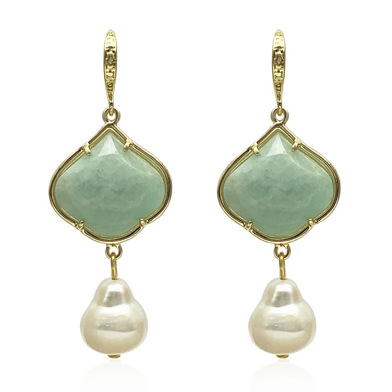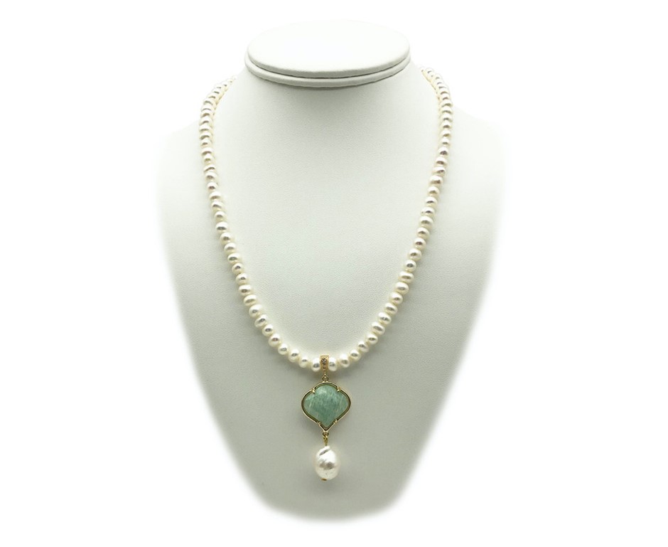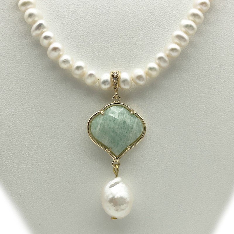 6-7mm White Freshwater & Baroque Pearl with Amazonite Pendant Charm Necklace, Bracelet & Earrings Set Earring Set