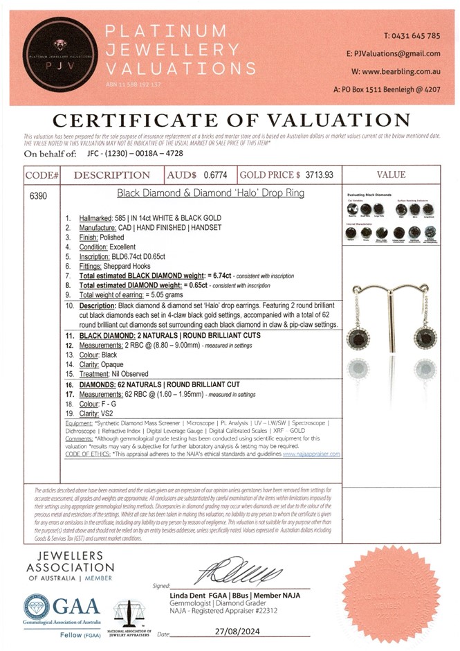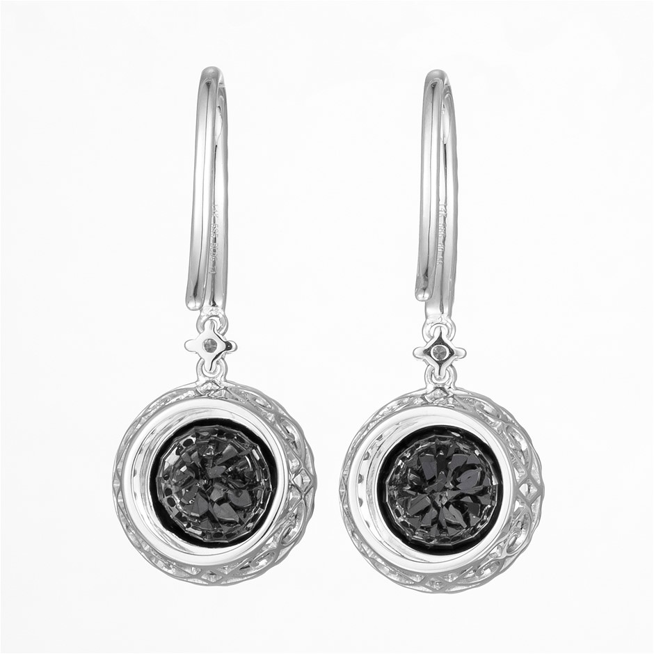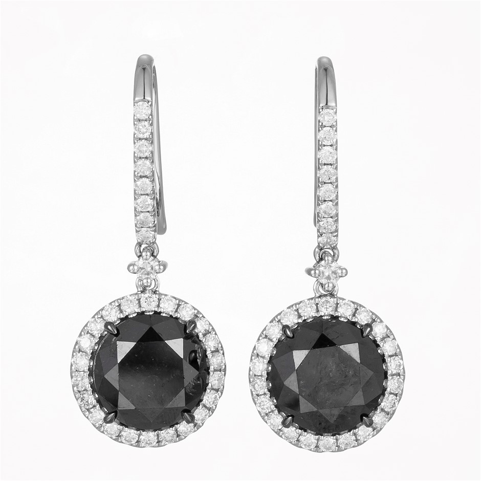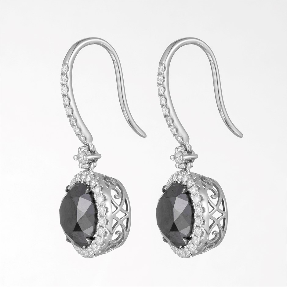 14CT White Gold Black Diamond and Diamond Drop Earrings