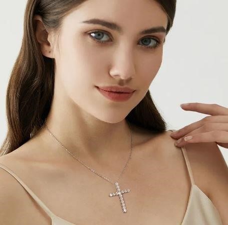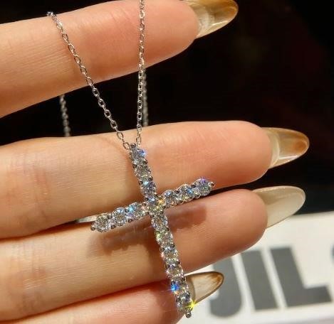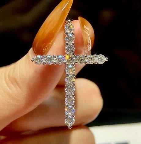 GRA Moissanite White Brilliant Cut stone 18k White Gold Cross Pendant (S925)