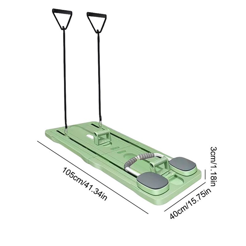 Description:The NNETM 4-in-1 Pilates Board is a versatile fitness tool designed to enhance your home workout experience. It combines an ab roller, push-up bars, plank support, and resistance bands into one compact unit, offering a complete solution for strengthening your core, arms, legs, and glutes. The ergonomic design with foam elbow pads ensures comfort during long sessions, while the automatic rebound system allows for a fluid, dynamic workout.
