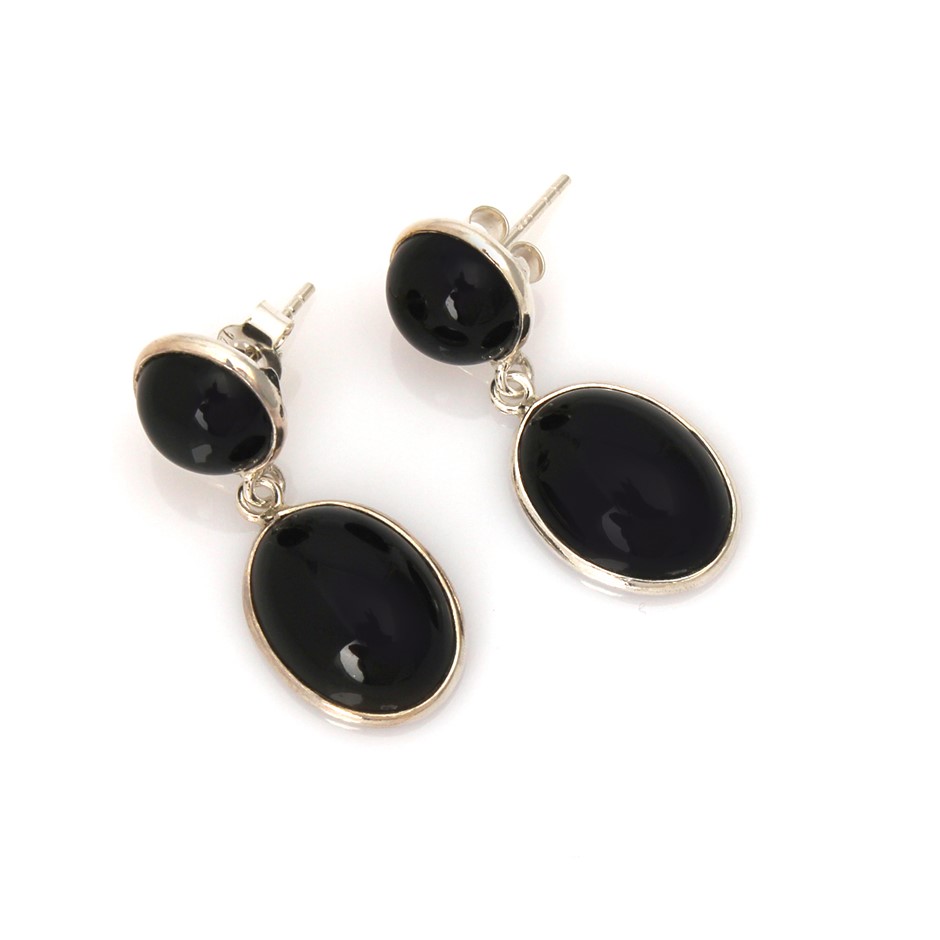 Beautiful 24 Cts Black Onyx Handcrafted 925 Sterling Silver Gemstone Drop Earrings