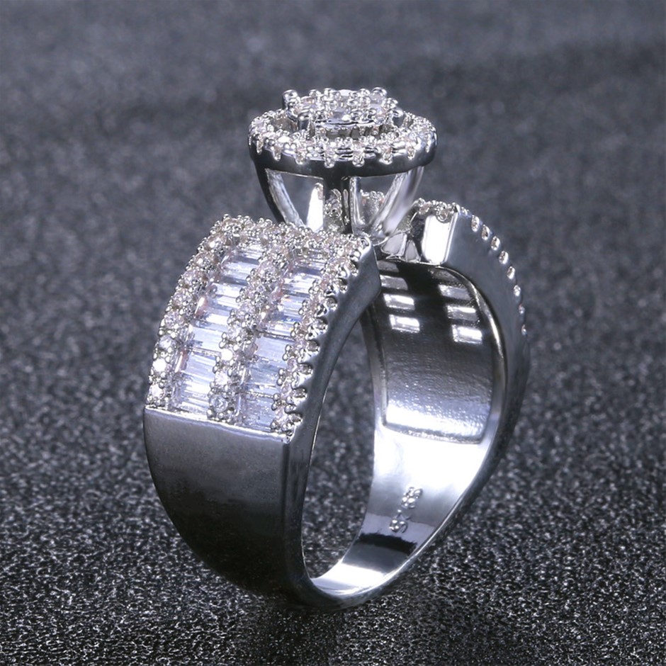 Elegant 18K White Gold plated Diamonds Simulants Ring size 7
