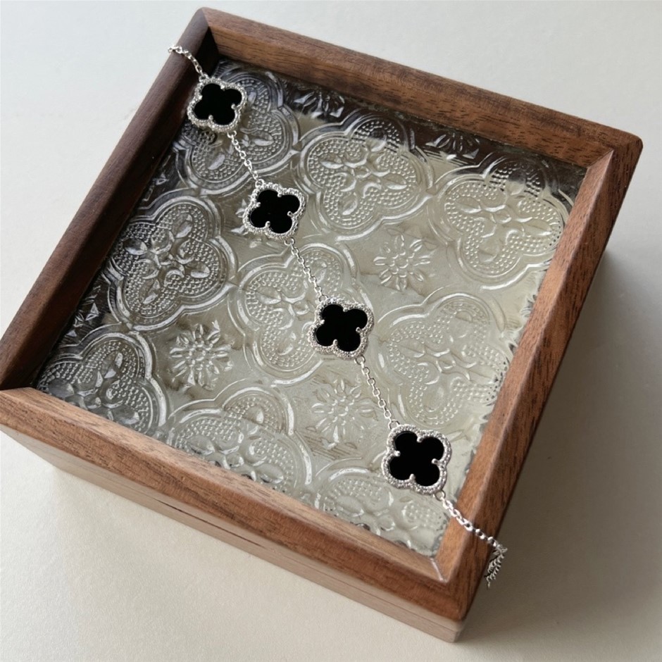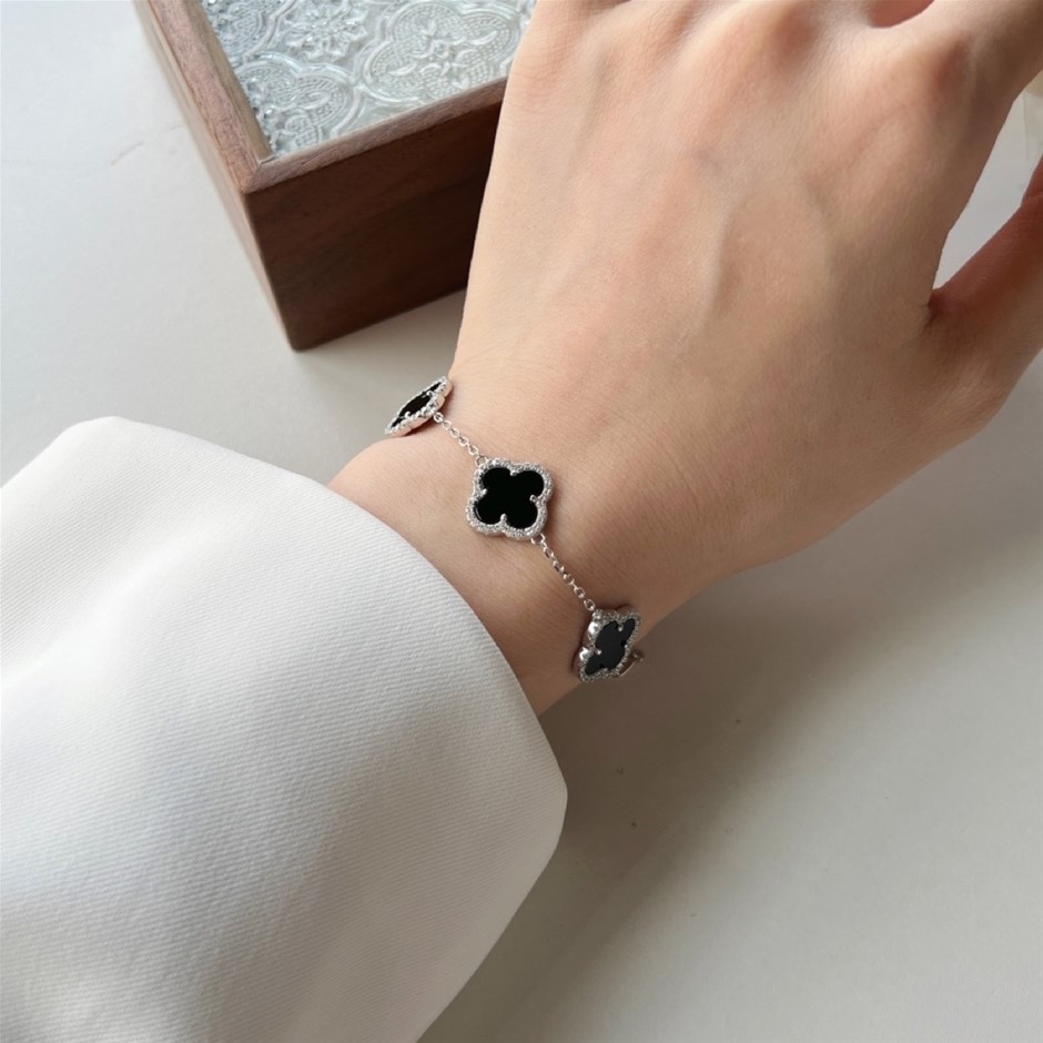 Shell Pearl Four Leaf Clover 925 Sterling Silver Tennis Bracelet