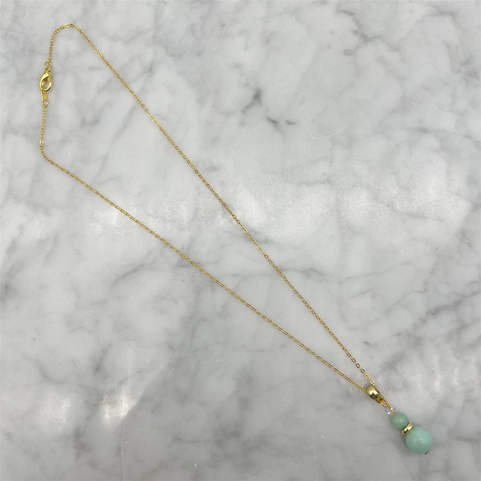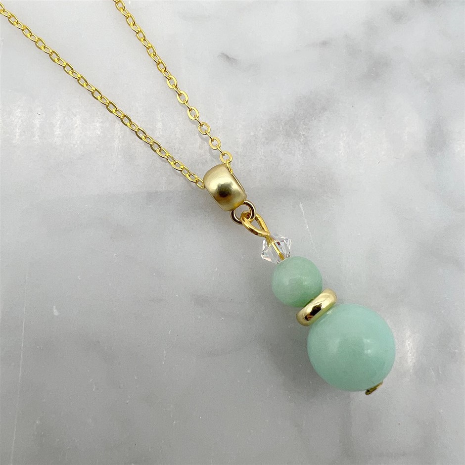 Genuine Aqua Colour Malaysia Jade `Quartz` & Swarovski® Austrian Crystal Gold Plated Pendant Necklace