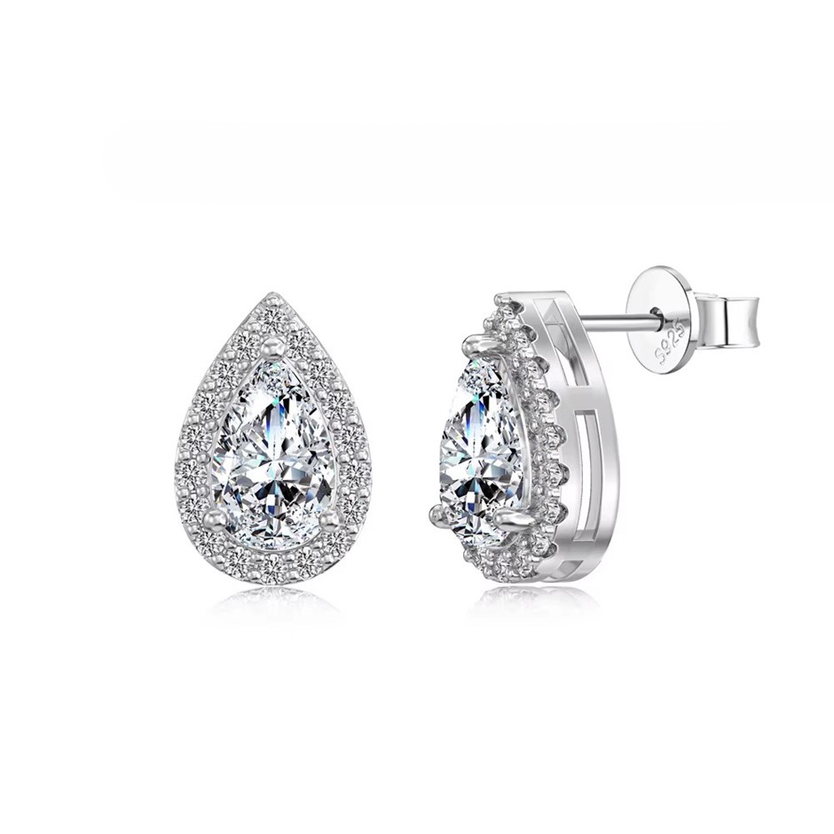 2.00ct Pear Cut GRA Certified Moissanite 925 Sterling Silver Drop Earrings