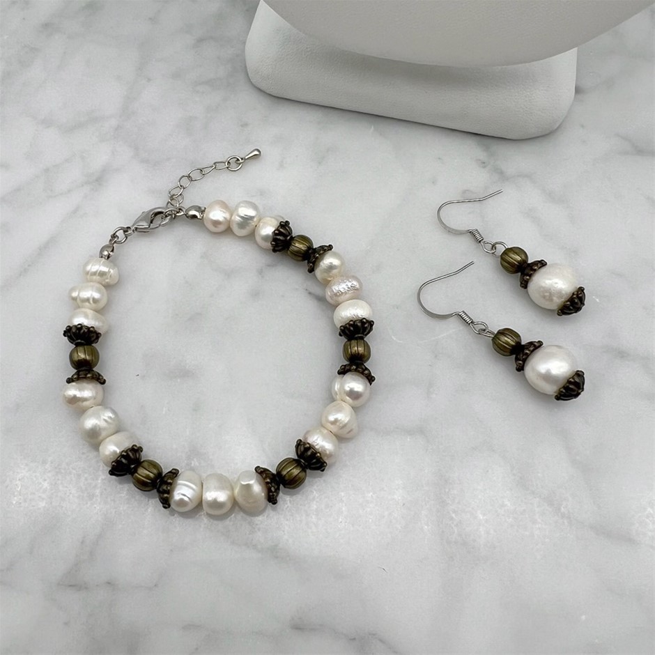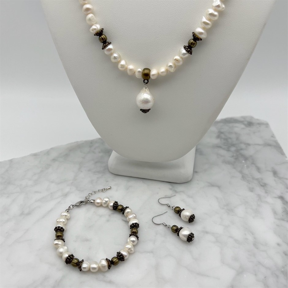 Elegant White Mixed Shape Freshwater Pearls & Baroque Jewellery Set