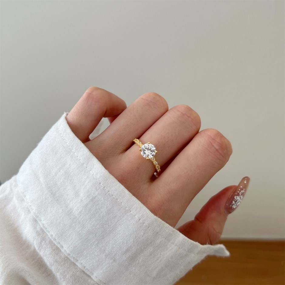7mm Round Cut Simulated Diamond 18K Gold Filled 925 Silver Ring - Size