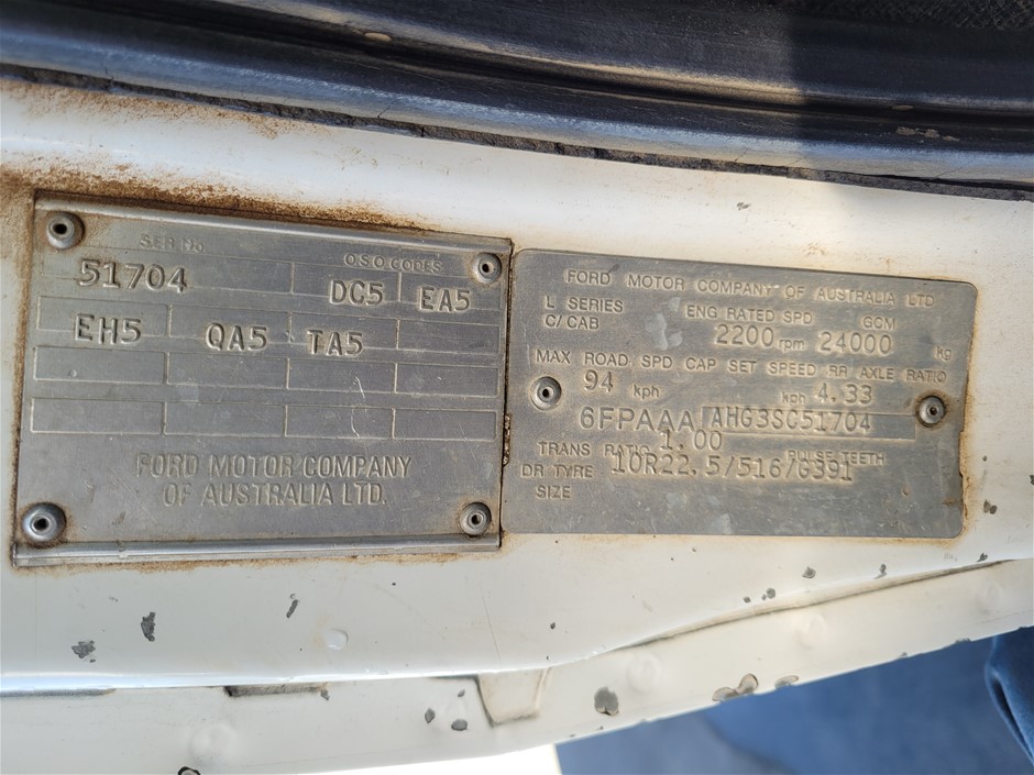 Please Note:The data form (if attached below the description in the lot) is a guide only. The assets are not driven or tested and description is based on walk around at the time of listing only. If engine is listed as turning over, this is based on a start-up only at the time of listing and has not been mechanically tested. There may be other damages, mechanical issues or body/hull/interior blemishes that have not been sighted or contained in the description at time of arrival or booking in. Therefore a full inspection is highly recommended prior to bidding.