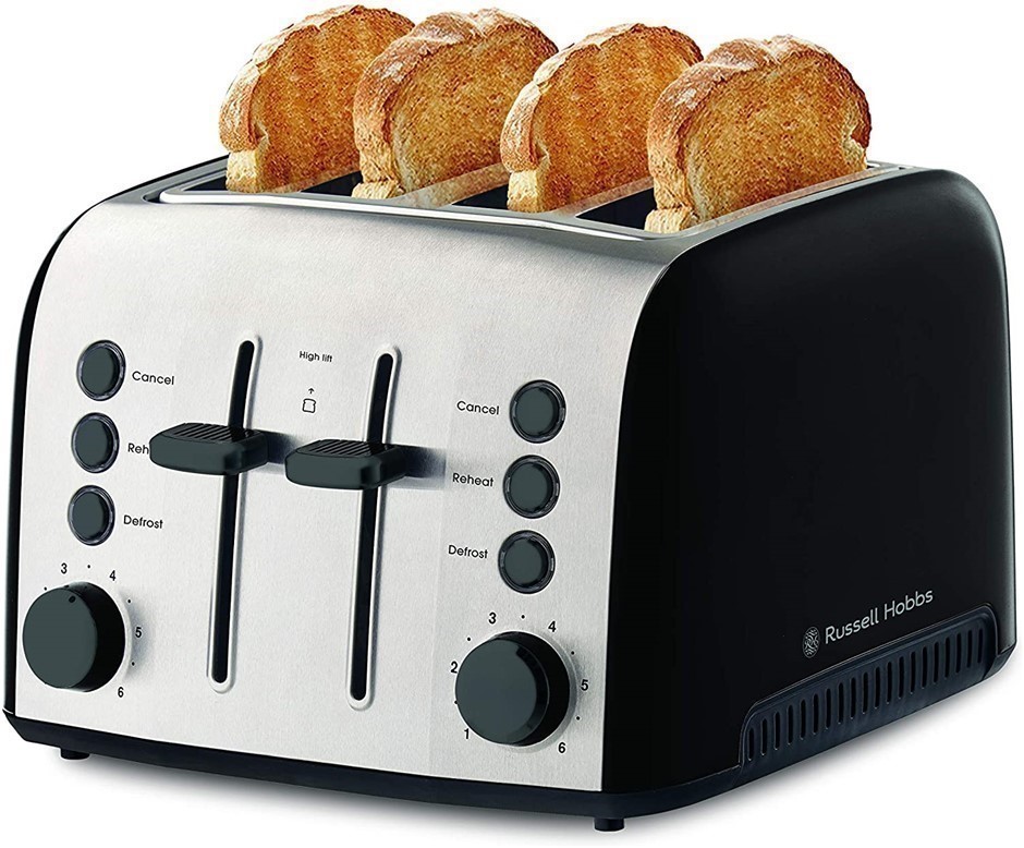 RUSSELL HOBBS Brooklyn Toaster 4 Slice, Extra Wide Toasting Slots, Black.